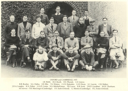 K.B.Scott seated 2nd Row Up, 3rd from right. Oxford and Cambridge University Golf Teams 1937 Photograph reproduced by permission