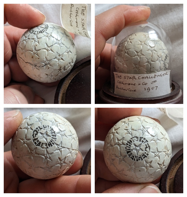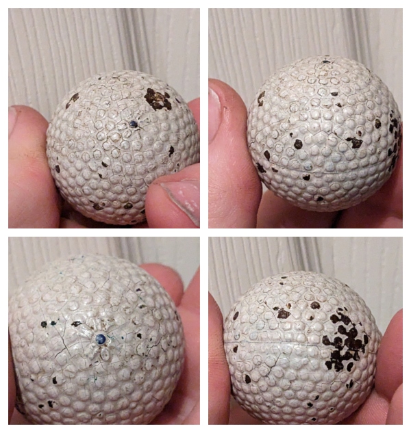 Reference : 58-600-45 Eclipse Patent Ball 1870s . mixture of gutta and cork.. "Goes off the club like a thief in the night". Great marketing strapline.